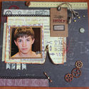 У меня мужская страничка из бумаги Лены Виноградовой (коллекция Медовый пунш). Чтобы использовать молнию без отходов, я из отрезанной тканевой части зиппера скрутила цветок. Чипборды заэмбоссила черной пудрой, в которую добавила для искры чуть-чуть золотой пудры. Акценты в поддержку фотографии добавила ярко-оранжевой гофробумажкой из-под упаковки духов и глянцевыми кругляшками от MME.