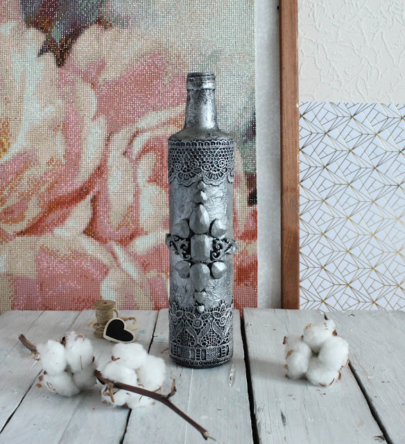 Ну и решила, что мой звездный час настал! Я никогда не декорировала бутылки. Ни декупажила и не работала вообще с круглыми предметами!